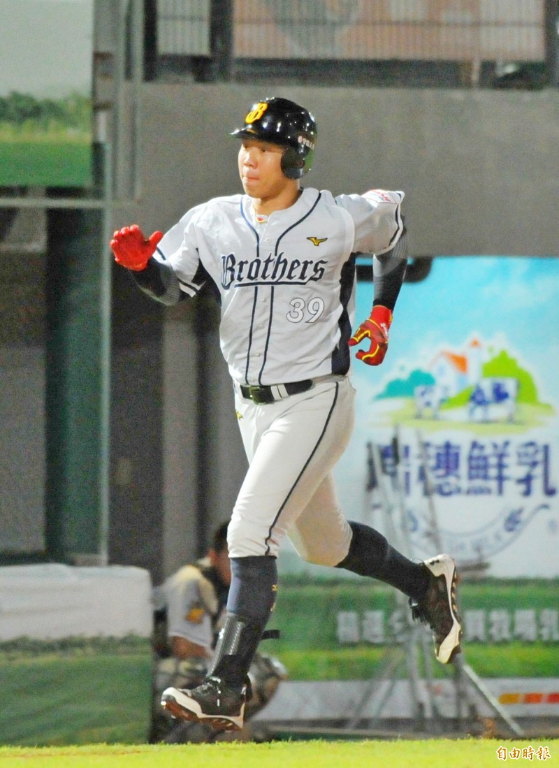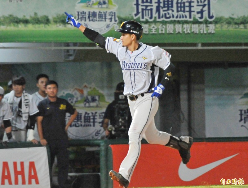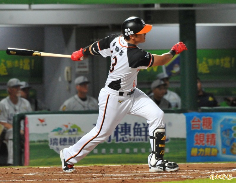 中信兄弟吳東融在7局上擊出陽春全壘打。(記者黃志源攝)