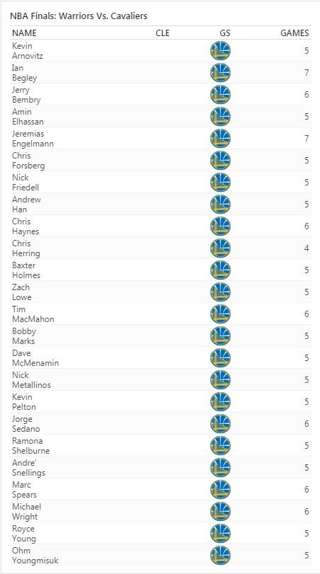 ESPN今天找來24名專家進行預測,竟無人看好騎士奪下總冠軍,其中只有2人認為會打到第7戰,15人認為勇士5場比賽就可將騎士送回家。