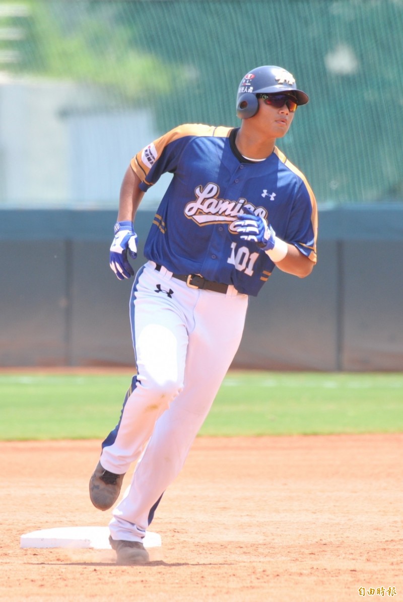 Lamigo二軍林大展在3局上擊出陽春砲。(記者黃志源攝)