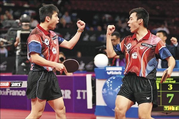 廖振珽(右)和林昀儒今天擊敗中國組合王楚欽/薛飛,晉級男雙16強。(資料照,取自國際桌總官網)