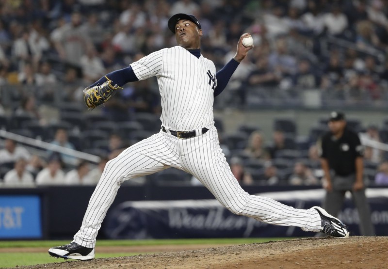 洋基此戰守備單場出現5次失誤,超級新人托瑞斯(Gleyber Torres)一人就有2次,但他在延長賽10局下敲再見安打,終場以6:5氣走太空人。查普曼此戰1局1K無失分,還拿到本季第2勝。